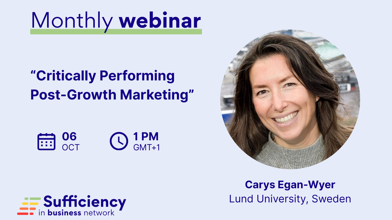 Join us online as Carys Egan-Wyer (external link) from the School of Economics and Management at Lund University, Sweden, will present her paper on "Critically Performing Post-Growth Marketing"
